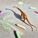 Characteristics: This dinosaur toy figure accurately represents what scientists believe this giant sauropod dinosaur may have looked like in life, with its long neck, thick legs, and long tail. It features a two toned brown coloration with striping and spots along its sides.
