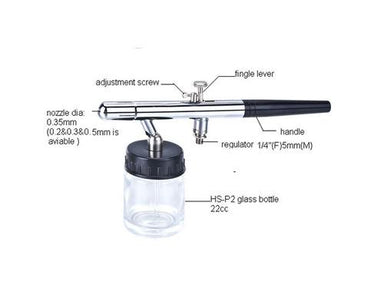 HS-80 Airbrush Kit Specifications: Nozzle Diameter: 0.25mmFluid Cup Capacity: 9cc0.2mm nozzle and needle0.3mm nozzle and needle0.5mm nozzle and nee...