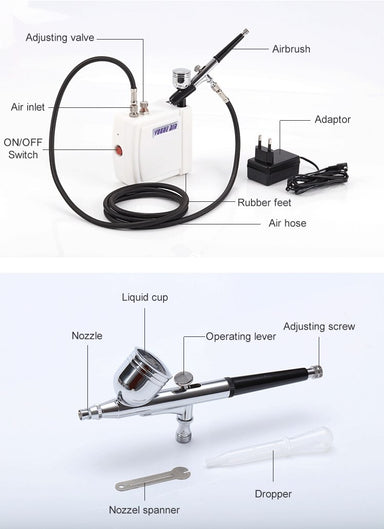 Airbrush compressor AS186, together with airbrush, can be widely used in craftwork spraying, cosmetics, tattoo, tanning, hobbies/models, fingernai...