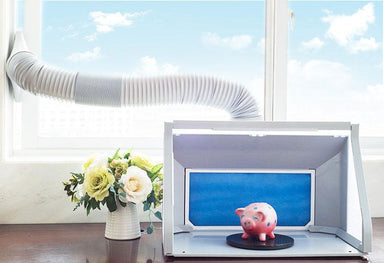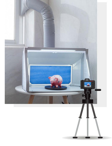 HSENG Spray Booth with LED LightsNow includes redesigned 90 deg exhaust tube and product shelf to hold paints and four airbrush holders.Removes pai...