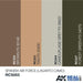 This set contains the four colors that are essential for painting models of the Spanish Air Force aircraft camouflaged in the so-called Lagarto scheme. Our Real Colors are the highest quality acrylic lacquer paints, made from a chemical formula that is improved over other brands in the market. They spray through an airbrush in a silky smooth manner, and adhere to the surface and dry perfectly with a soft satin or matte finish. These paints work superbly with all kind of weathering or masking products. They may be diluted with AK-Interactive’s specific thinner, or thinners from other manufacturers that are intended for acrylic lacquer paints (non-vinyl). They may also be easily mixed with other acrylic lacquer paints. Real Colors accurately reproduce the original colors.
