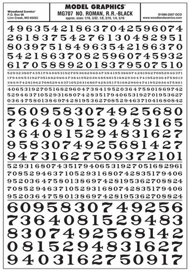 Numbers Roman R.R. Black Package contains one sheet. Sheet size: 5 5/8 in x 8 1/4 in (14.2 cm x 20.9 cm) Letter sizes: 1/16 in, 3/32", 1/8 in, 3...