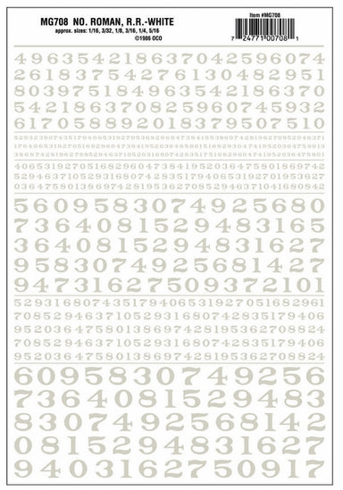 Numbers Roman R.R. White Package contains one sheet. Sheet size: 5 5/8 in x 8 1/4 in (14.2 cm x 20.9 cm) Letter sizes: 1/16 in, 3/32 in, 1/8 in,...