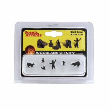Black Bears - N scale A set of black bears - three cubs and adults in different poses. Set contains 6 pieces. Colors may vary from actual produc...
