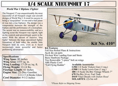 Balsa USA 1/4 Scale Nieuport 17 Kit No. 410World War I Biplane FighterThe Nieuport 17 was unquestionably the most successful of all Nieuport single...