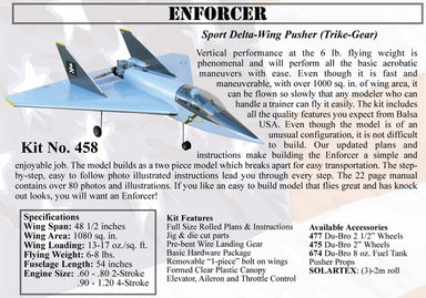 BALSA USA Kit No.458 ENFORCER 1231mm WINGSPANSport Delta-Wing Pusher (Trike-Gear)Vertical performance at the 6 lb. flying weight is phenomenal and ...