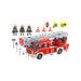 Figures: 1 firewoman, 2 firemen Accessories: 1 fire engine, 1 radio, 1 short axe, 1 long axe, 1 fire extinguisher, 1 flashlight, 1 broom, 1 shovel, 1 jet pipe, 1 power generator, 1 pressure ventilator, 3 pylons, 3 fire helmets with visor, 1 fire brigade chest tank, 3 pairs of gloves