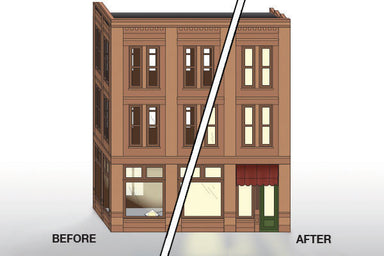 Corner Emporium - HO Scale The Corner Emporium is an old-time three-in-one store. There is a barbershop in front and a tobacco shop in the rear, w...