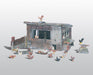 You’ll practically hear the chickens clucking. This scene would be great on a country scene. Includes chickens, the shed, a bench, feeders and the old chopping anvil.