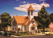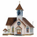 Double doors welcome congregation members to this elegantly simple church. The Community Church has tons of details to set the scene. There is a field-stone foundation, clapboard siting, tall stained glass windows, rafters with decorative gable braces, front porch railings, and a bell tower steeple topped with a gold cross. There is even a freestanding church sign set in a fieldstone planter! See photos for footprint.