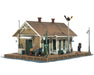 This old Depot is the busiest place in town when the train arrives. Dansbury Depot sits on a staired platform and includes a combination of clapboard and board/batten siding, an intricate door, window styling, benches, a mailbox, train signal, luggage cart, station sign, street lamps, and more! See photos for footprint.