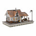 The Depot is a classic whistle stop depot suitable for any layout. It features clapboard siding, a weathered cedar shake roof, covered outside passenger waiting area and a modeled interior that includes a ticket clerk figure standing before an open ticket window. Scene-setting details include a lamppost, posted train schedule, luggage carts, benches, semaphore, pigeons sitting on the roof, signage, decals and many more. The Depot also has one interior LED light. See photos for footprint.