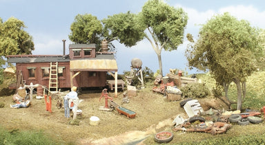 Possum Hollow HO Scale Kit An abandoned caboose has been converted to a home for a backwoods family. The piles of accumulated junk add to the rust...