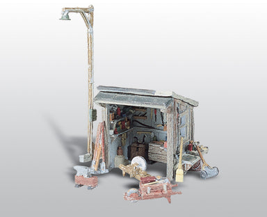 Tool Shed HO Scale Kit This is one busy place with mowers, hand tools, a grinding wheel, carts and a broom to sweep up at the end of a busy day. I...