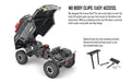 Along with all this is a one of a kind hinged body mount system that allows easy access to the battery, ESC and chassis in an instant--say goodbye to tiresome and easily lost body clips poking your fingertips! Additional standard features of the Gen 7 PRO: a molded roll cage, inner fenders, a molded snorkel, shackle mount bumpers with a hitch ball, LED mounts, and a roof rack loaded with scale accessories like a spare tire, jack, fuel cans, shovel, axe and sand ladder. You could easily spend through your teeth to get these amazing components but your stylish and realistic Gen7 PRO comes with them standard.