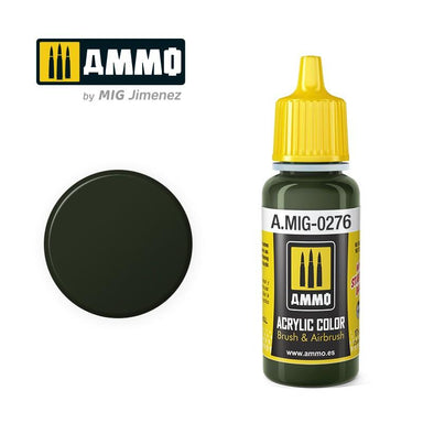 AMMO$3.99| /No reviewsGreen Olive Scuro 2Reference: AMIG0276Acrylic waterbased color.High quality paint for Brushes and Airbrush. 17mL jar.Dark olive green colour used b...