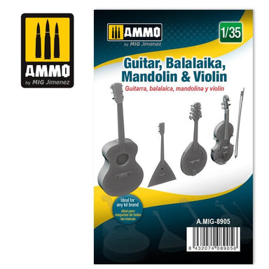 1/35 Guitar, Balalaika, Mandolin & ViolinReference: A.MIG-8905This set is composed of four highly detailed string instruments. A perfect comple...