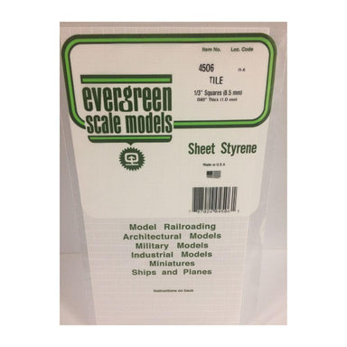 This is a Sheet of .040 Styrene with 1/3" Square Tile Design from Evergreen Scale Models. For experienced model builders.FEATURES: White styrene sh...