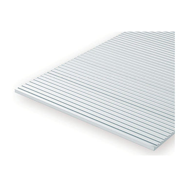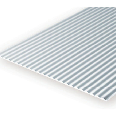 .040" X .080" OPAQUE WHITE POLYSTYRENE CORRUGATED SIDING.040" (1.0mm)THICK X .080" (2.0mm) GROOVE SPACING, .027" (.68mm) RIB WIDTH12" X 24" SHEET S...