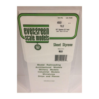 This is a Sheet of .040 Styrene with 1/8" Square Tile Design from Evergreen Scale Models. For experienced model builders.FEATURES: White styrene sh...
