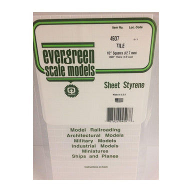 This is a Sheet of .040 Styrene with 1/2" Square Tile Design from Evergreen Scale Models. For experienced model builders.FEATURES: White styrene sh...