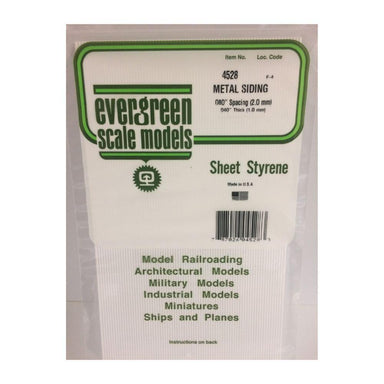 This is a Sheet of .040 Styrene with .080" Spaced Metal Siding Design from Evergreen Scale Models. For experienced model builders.FEATURES: White s...