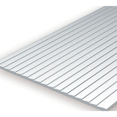This is a Sheet of .040 Styrene with .030" Spaced Metal Siding Design from Evergreen Scale Models. For experienced model builders.FEATURES: White s...