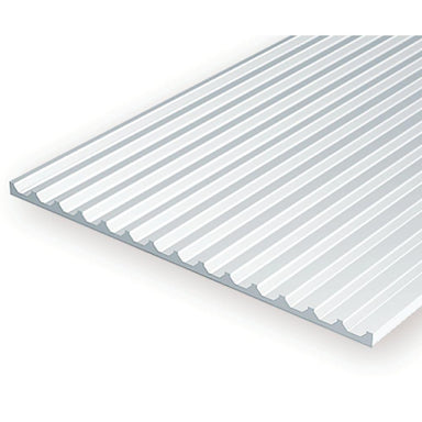 .040" X .100" OPAQUE WHITE POLYSTYRENE CORRUGATED SIDING.040" (1.0mm)THICK X .100" (.0mm) GROOVE SPACING, .027" (.68mm) RIB WIDTH12" X 24" SHEET SI...