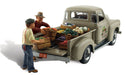 Paul and his helper deliver a pick-up truck bed full of the freshest product your layout gardens have to offer. The vintage step-side includes such details as grooved running boards, tailgate in unload/load position and the bed is full of fresh fruits and vegetables.