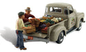 Paul and his helper deliver a pick-up truck bed full of the freshest product your layout gardens have to offer. The vintage step-side includes such details as grooved running boards, tailgate in unload/load position and the bed is full of fresh fruits and vegetables.