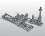This elaborate setup is modeled after the early mills with a steam engine, fueled by coal. The huge blade cut through large timbers. Makes great milling scenes, with cut timbers.