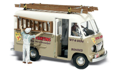 Peter's Painting - HO Scale An old milk truck doubles as Peter's paint truck and holds his ladders, rags and paint buckets quite nicely. The bonde...