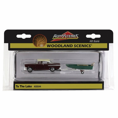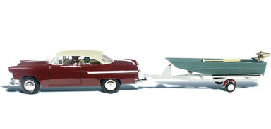 To the Lake - HO Scale Lake-goers are loaded up and ready to go with their boat and vintage outboard motor in tow. Colors may vary from actual pro...