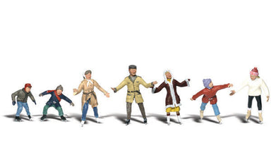 Ice Skaters - HO Scale WS-A1899A set of skaters on their feet and one has fallen and can’t get up. Set contains 7 pieces. Colors may vary from actu...