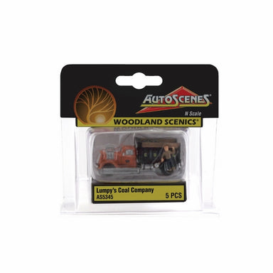 Lumpy's Coal Company - N Scale Lumpy prepares to shovel coal from the chute of his vintage delivery truck into a detailed, ready-to-mount coal bin...
