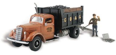 Lumpy's Coal Company - HO Scale Lumpy prepares to shovel coal from the chute of his vintage delivery truck into a detailed, ready-to-mount coal bi...