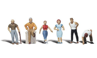 Casual People - HO Scale WS-A1874A set of people - Four men, one woman standing and one woman sitting. Set contains 6 pieces. Colors may vary from ...
