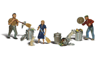 People & Pesky Raccoons - HO Scale WS-A1875 A set of two men, one with a broom, trying to shoo a raccoon, one woman with a broom also trying to...
