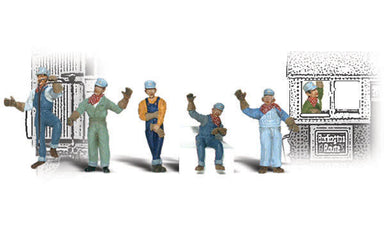 Engineers - HO Scale WS-A1866Engineers in various standing and sitting positions, all very animated in their work gear. Set contains 6 pieces. Colo...