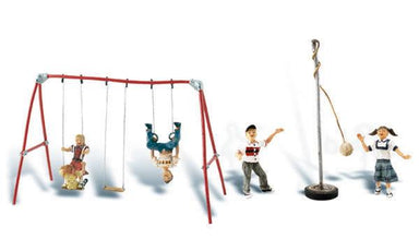 Playground Fun - HO Scale WS-A1943Two youngsters play tether-ball while two others share a swing, and the fifth flips up-side-down. Set contains 4 ...