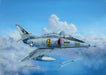A-4F refinement of A-4E with extra avionics housed in a hump on the fuselage spine (this feature later retrofitted to A-4Es and some A-4Cs) and more powerful J52-P-8A engine with 9,300 lbf (41 kN) of thrust, later upgraded in service to J52-P-408 with 11,200 lbf (50 kN), 147 built. Some served with Blue Angels acrobatic team from 1973 to 1986