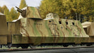 For the armored train units of Type BP42, the artillery was increased, following Russian and Polish examples, to four guns, which were not, though ,mounted two to a car as in the latter types, but one per separately built ten-sided rotating turret, in order to avoid too-great losses from a direct hit. The two halves of the train, before and behind the locomotive were identical and consisted of one artillery car with one 10cm le.F.H 14/19(p) gun, one command and infantry car and one artillery and anti-aircraft car with one 7.62cm F.K.295/l(r) and one 2cm anti-aircraft quadruple unit.