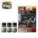 The essential weathering set for all types of engine effects, including grease and fuel stains. Engines, fuel tanks, mechanical parts and all kinds of dirty engine greased surfaces can be weathered with this set. It includes three enamel effects: