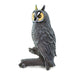 Size and Color: Our long eared owl figure is 2 ½ inches tall and 1 ½ inches long from the tips of its wings to the end of its perching branch. Its plumage is mostly dark grey, with a yellowish facial disc with white and black edges.