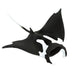 Size and Color: This figure features a 4 ½ inch wide wingspan and is 5 ¾ inches long from the fins around its mouth to the tip of its tail, making it about the size of a soda can. Its body is black with white markings on its tail, wingtips and head. Its underside is white.