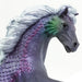 Size and Color: At about 4 ½ inches tall and 5 inches long, this figure is about the size of a DVD or Blu Ray disc. This hand-painted Merhorse features green fins, a silvery mane, and pearlescent purple scales on a blue-gray body.
