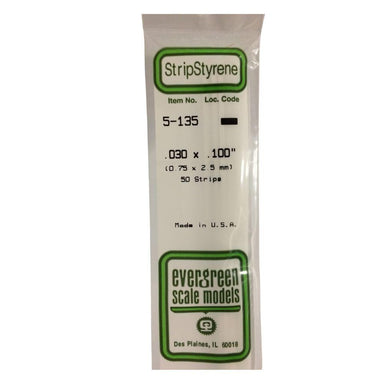 Package of Ten .030 x .100" Styrene Strips from Evergreen. They are for experienced model builders.FEATURES: White styrene strips are 14" long. Str...