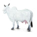 • Size and Color: At 5 inches long and 3 ½ inches high, this Ongole cow is is about the length of a soda can on its side. It is largely white, with gray on its hooves and horns. Its udders and the inside of its ears are pink, and its nose, eyes and tail are black.