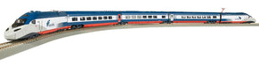 Launched in 2000, the Amtrak® Acela® made history as the first high-speed train service in North America, running between Washington D.C., New York City, and Boston at speeds upwards of 150MPH. Now, just over 20 years later, the Acela® service continues to push the envelope for speed and modernity in the Northeast with the development of a new generation of hi-tech trains from Alstom. The Bachmann Amtrak® Acela® II Train Set features two locomotives (one powered, one non-powered), ready-to-run with analog control and speaker-equipped for upgrading to sound and DCC, a First Class passenger car, Cafe Car, and Business Class Quiet Car. Also included is an 81" x 45" oval of snap-fit nickel silver E-Z Track® with concrete ties, power pack and speed controller, and illustrated instructions.