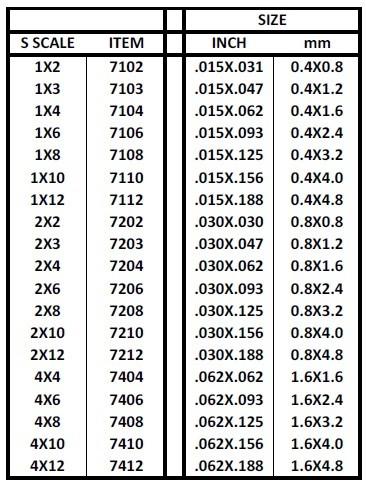 7102 - .015" X .031" OPAQUE WHITE POLYSTYRENE S SCALE STRIPS ( 1 X 2 )787026071022 .015" X .031" X 14" / .4mm X .8mm X 35cmDIMENSIONS REPLICATE 1 ...